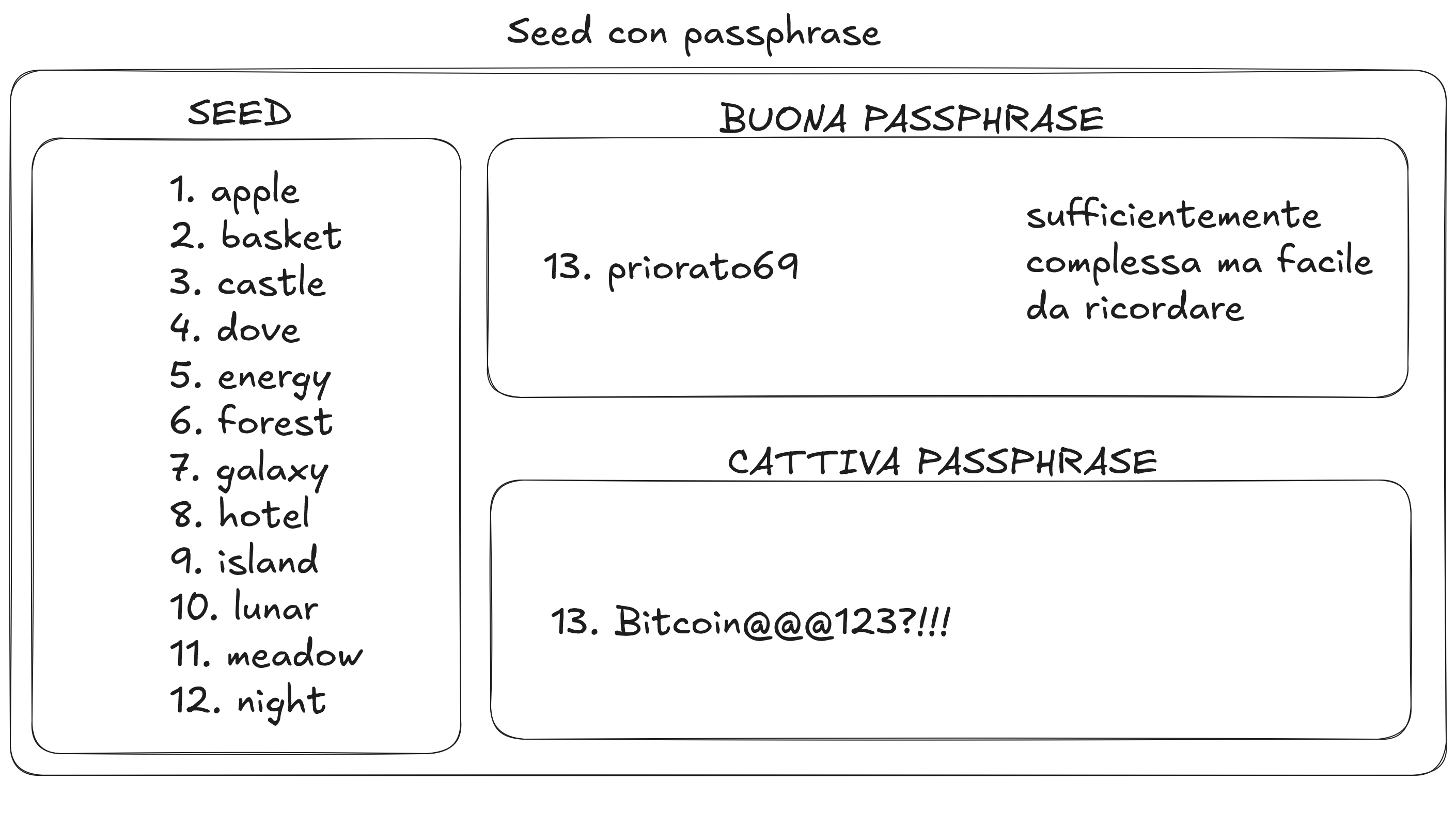 Using a passphrase increases seed security against thieves or physical attacks, but also introduces risks: after years of inactivity, you might not remember it, and in case of accidents or memory loss, it might become impossible to recover the funds.